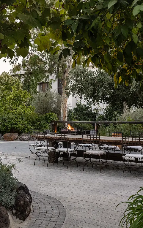 אדריכלות הנוף במרחבים השיתופיים תוכננה בשאיפה ליצור אזורים אינטימיים לשהייה שקטה בחוץ ולהאדרת נופי הגולן. בוסתנים שופעי צמחייה ים-תיכונית, טרסות ושבילים מאבני בזלת מקומית נטמעים בין המבנים ומחברים אותנו אל הטבע הפראי. אתם מוזמנים להאט איתנו את הקצב, להיות נוכחים ברגע, ולהתענג על הדברים הפשוטים: הרפיה אחרי תרגול יוגה, צבעי השקיעה, הזעה בסאונה, ריח העץ באש, ארוחה מזינה ויין איכותי בסוף היום.